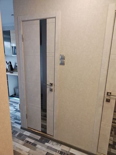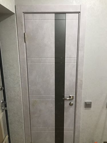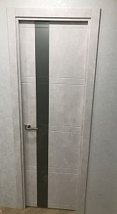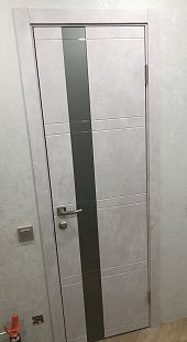 Дверь ПО Evolution 1 Бетон лайт стекло зеркало-графит из Экошпона COVERFLEX (Двери Нева) в с установкой и доставкой