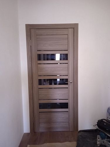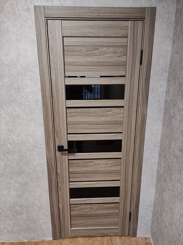 Дверь ПО Queen X3 Дуб тортора черное стекло из Экошпона COVERFLEX (Двери Нева) в с установкой и доставкой
